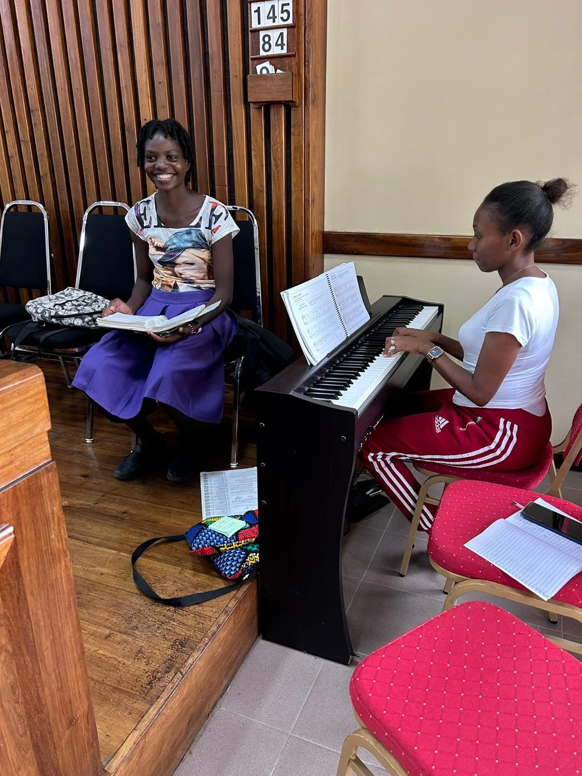These are two of my piano students. They are so excited to be learning how to play the piano and work hard. Scheduling is alot more difficult here but we are flexible and the students do the best that they can. I enjoy working with them.