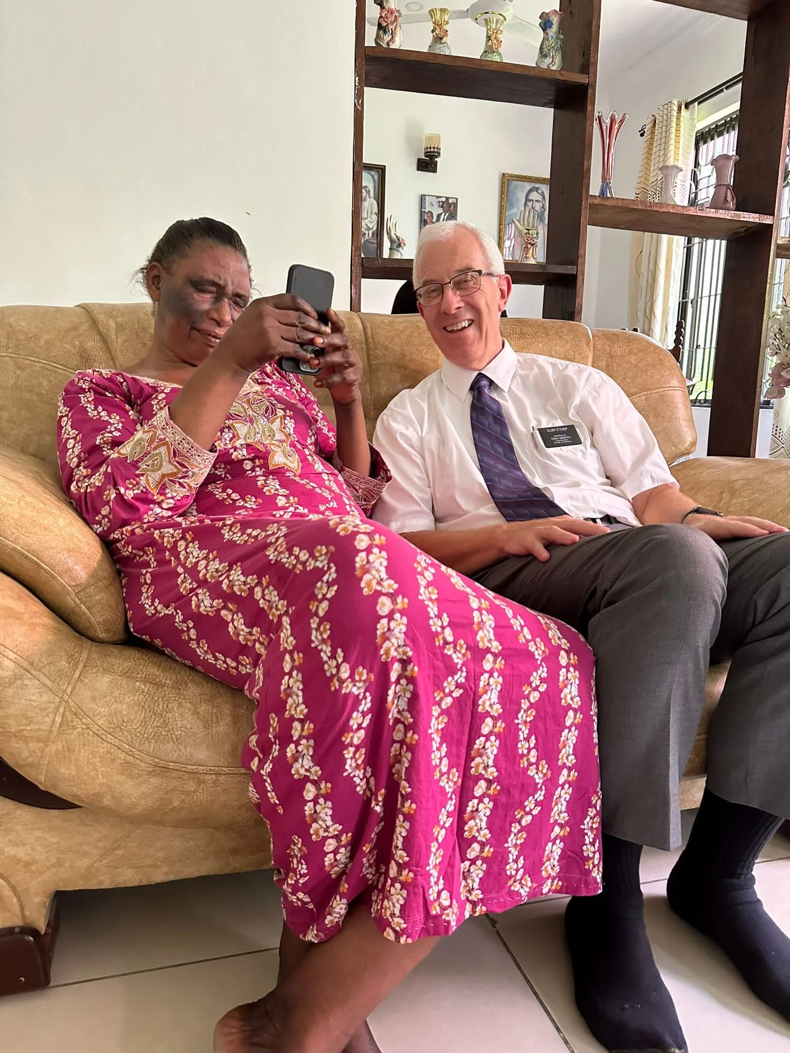 Our dear friends, Lula and Pres. Rabona invited us for lunch. It was delicious, with chapati, baked chicken, fresh sliced veggies, watermelon, beef stew, and potato rounds. They are so gracious, loving and kind. Farrell and I are so impressed with their faith in Jesus Christ and His Gospel. Pres. Rabona is our District President. I asked for him to share his conversion story. When they were newly married, Lula was already a member. Pres. Rabona eventually wanted to join but didn’t know if he could give up drinking his wine from Italy. Lulu loves flowers and she told him if he would pour the wine over the flowers in the garden they would really grow well. He believed her and wanting her to be happy with more flowers he took all of the fancy bottles of wine and poured them over the flowers. He said that she was surprised that he did it. But it worked, not more flowers but after one week he had no desire to drink anymore. They make me smile. Lula loves teaching the Seminary students.